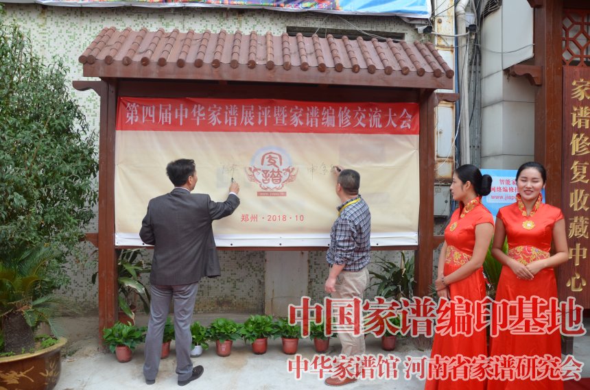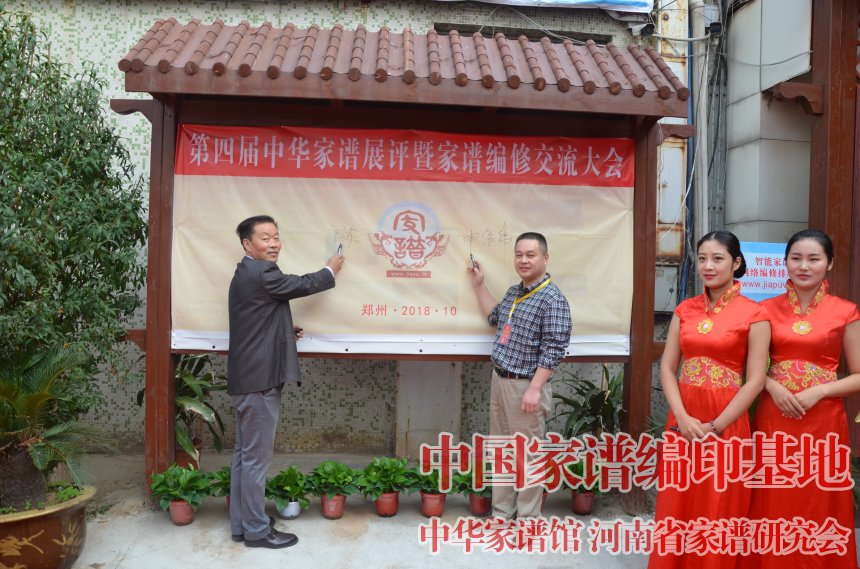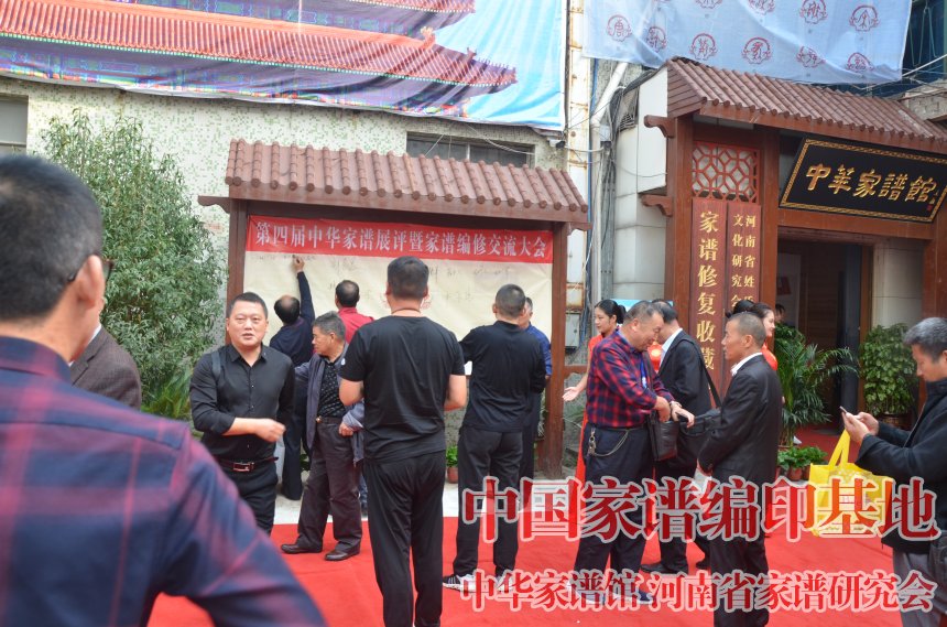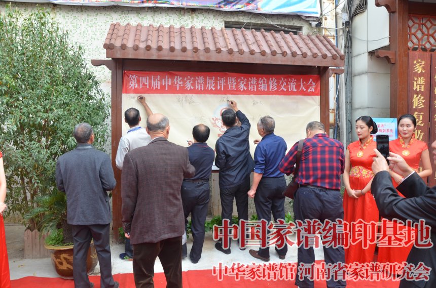 第四届家谱展评大会上,与会嘉宾在签字墙上签字留念