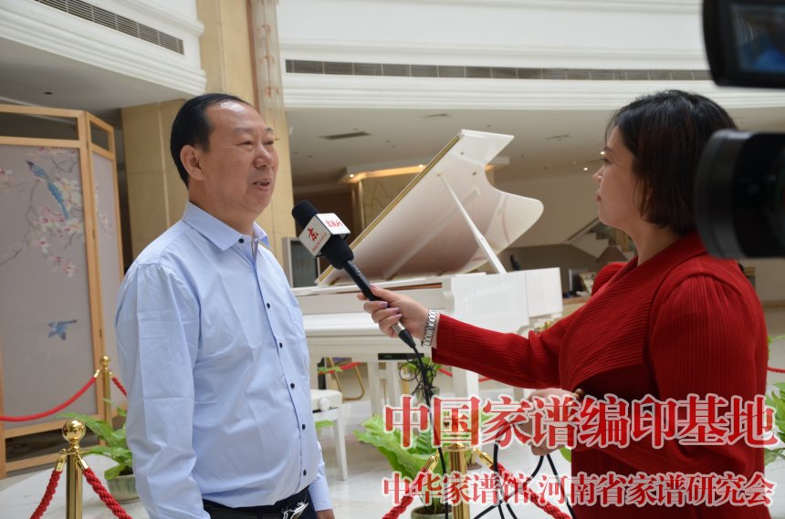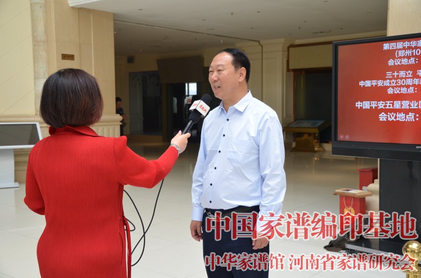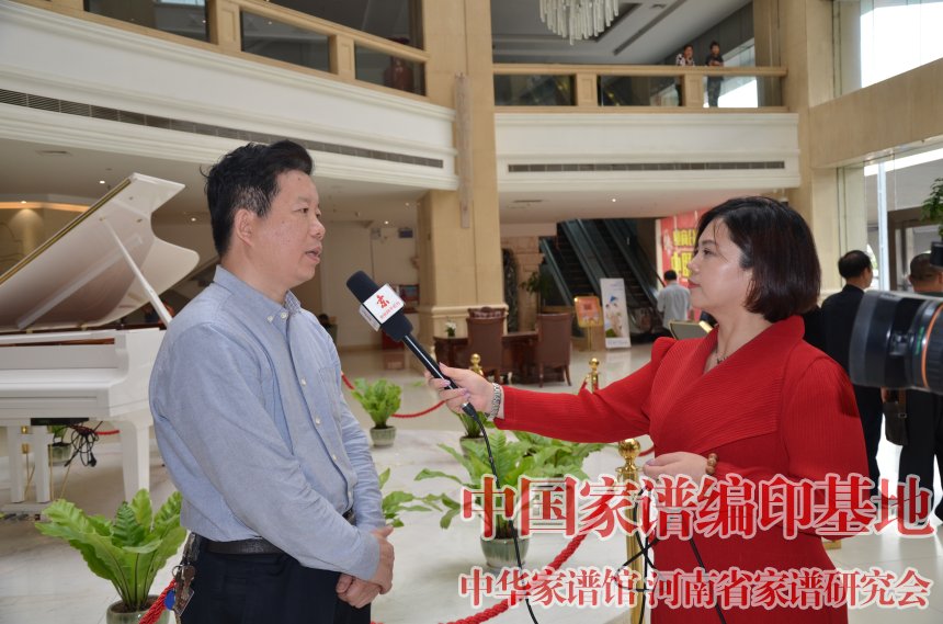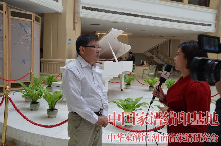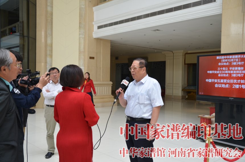在第四届中华家谱展评大会期间,与会专家接受记者采访